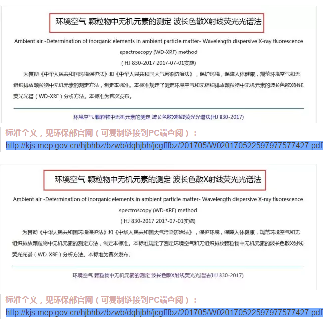二、《環(huán)境空氣 顆粒物中無機(jī)元素的測定 波長色散X射線熒光光譜法》(HJ 830-2017)。