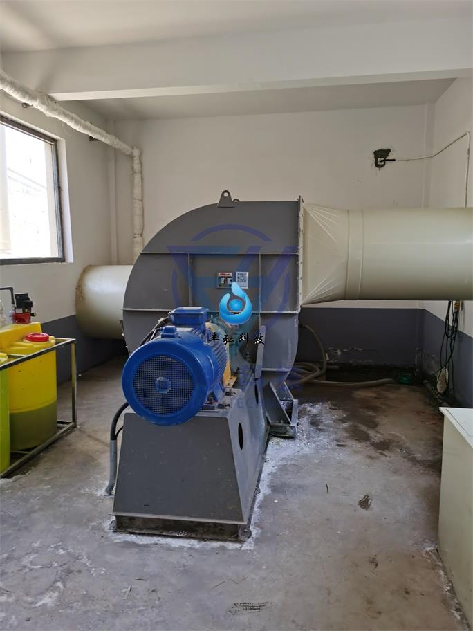 氣體經(jīng)過收集管道進(jìn)入洗滌塔內(nèi),臭氣從洗滌塔的底部送入,填料表面與噴淋液在逆流連續(xù)、充分接觸條件下進(jìn)行傳質(zhì),池內(nèi)填料層作為氣液兩相間接觸的傳質(zhì)介質(zhì),底部裝有填料支撐板,填料以無序方式堆置在支撐板上噴淋液從池頂經(jīng)液體分布噴淋到填料上,并沿填料表面流下。臭氣行水洗噴淋,去除臭氣中的粉塵、NH3以及少量H2S、CH3SH等氣體,氨氣溶于水形成堿性溶液,循環(huán)噴淋可去除臭氣中的H2S,同時(shí)吸收少量有機(jī)臭氣污染物。噴淋洗滌池上設(shè)置了監(jiān)視窗和檢修孔以便于人員進(jìn)行監(jiān)視洗滌塔的工作狀況是否正常以及及時(shí)更換老化的填料。為了避免氣排放夾帶液滴,在凈化裝置頂部設(shè)置氣水分離器。池內(nèi)噴淋液循環(huán)使用,在使用過程中會(huì)有部分損失和消耗,需要定期更換噴淋液。噴淋池也可根據(jù)實(shí)際工況靈活添加或更換化學(xué)吸收劑,但是一定要注意化學(xué)廢水帶來二次污染。