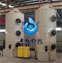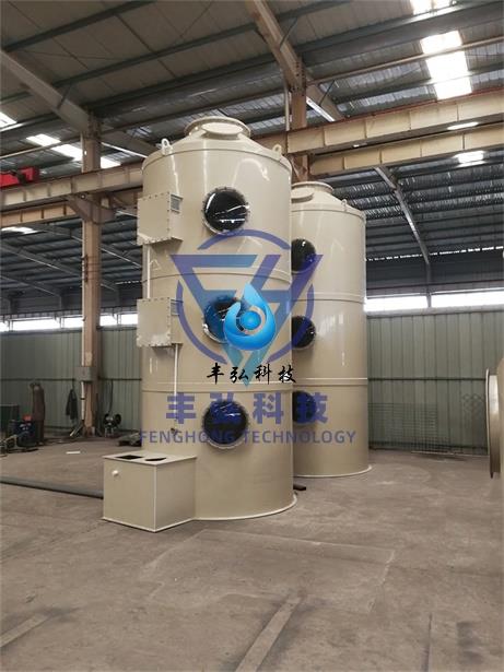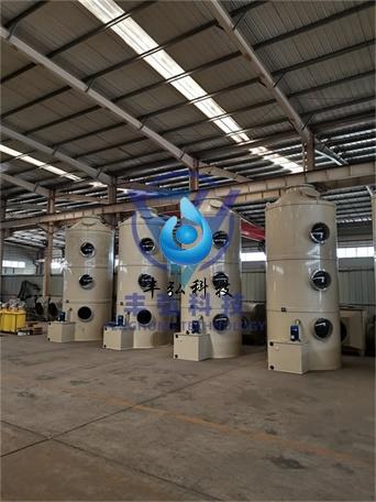 廢氣凈化塔主要的運作方式是廢氣由風(fēng)管引入凈化塔,經(jīng)過填料層,廢氣與氫氧化鈉吸收液進行氣液兩相充分接觸吸收中和反應(yīng),廢氣經(jīng)過凈化后,再經(jīng)除霧板脫水除霧后由風(fēng)機排入大氣。吸收液在塔底經(jīng)水泵增壓后在塔頂噴淋而下,后回流至塔底循環(huán)使用。